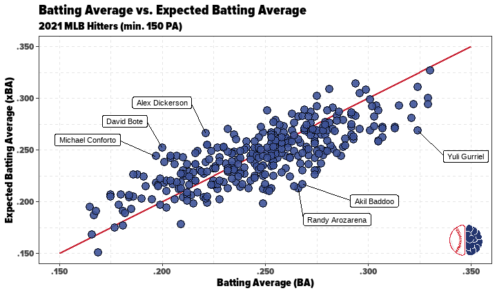 For instance, if a player has a high batting average but a low xBA, it may indicate that the player has been getting lucky and their batting average may decrease in the future. Conversely, a player with a low batting average but a high xBA might be hitting the ball well but has been unfortunate with the outcomes.